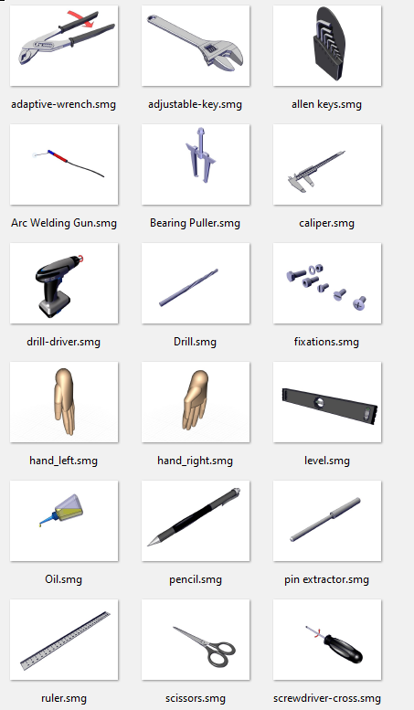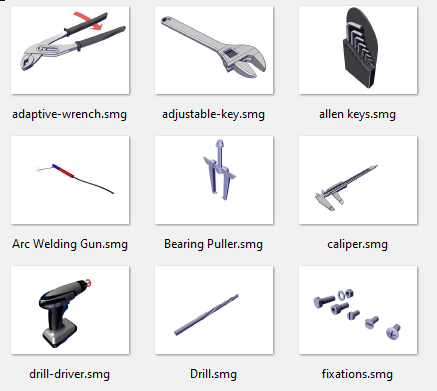 När vi skapar våra bilder, filmer och instruktioner i SOLIDWORKS Composer så behöver vi ibland lägga till ett verktyg t.ex. en skruvmejsel eller en skiftnyckel. Det går ju utmärkt att ladda ned varianter från bibliotek online men jag skulle vilja slå ett slag för att kolla igenom de modeller som följer med i Composer-installationen. Några exempel nedan;