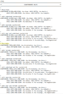 Här kan vi då ta bort symbolen för counterbore/countersink, denna skrivs ut som ”<HOLE-SPOT>” respektive ”<HOLE-SINK>”. Dessa byter vi helt ut med ”Counterbore” respektive ”Countersink”. Nu kan vi spara ner den editerade callout filen. Programmet måste startas om för att ladda in den nya callout filen, och vi måste dessutom skapa om våra hole callouts för att det rätta formatet ska laddas in.