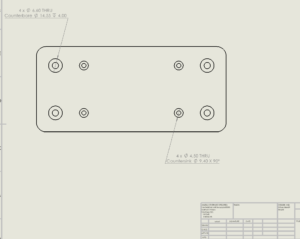 Hole callout hämtar sin information från hole wizard eller från ett cirkulärt extruderat cut. Den kan innehålla en beskrivning, storlek på hålet, djup, kvantitet etc. Men varför skulle man vilja ändra på den texten? Ta exemplet nedan: Jag tycker det blir otydligt med symbolanvändningen och vill istället att det ska skrivas ut ”Counterbore” respektive ”Countersink” så det blir övertydligt vad det handlar om för hål.