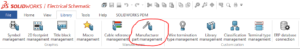 Vi startar SOLIDWORKS Electrical Schematics 2D (detta går att nå från Electrical 3D men för enkelheten tar vi 2D-mjukvaran). Vi hoppar över att öppna ett sparat projekt och klickar sonika ”close” i projekthanteraren. Går till fliken ”Library” såsom att vi vill jobba direkt in i Electrical-databasen och det vi nu modifierar slår igenom för alla kommande projekt, det läggs centraliserat sparat (ej specifikt för ett visst projekt). För er användare som har en centraliserad Electrical-server setup så börjar denna modifiering att gälla direkt för alla användare oavsett Schematics- eller Electrical 3D-licens. Eftersom vi vill modifiera köpeartiklar så tar vi ikonen ”Manufacturer part management”.