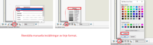 - De manuella funktionerna i ”Line Format” visas istället för lager, det går att återställa med ”Default”-inställningen.