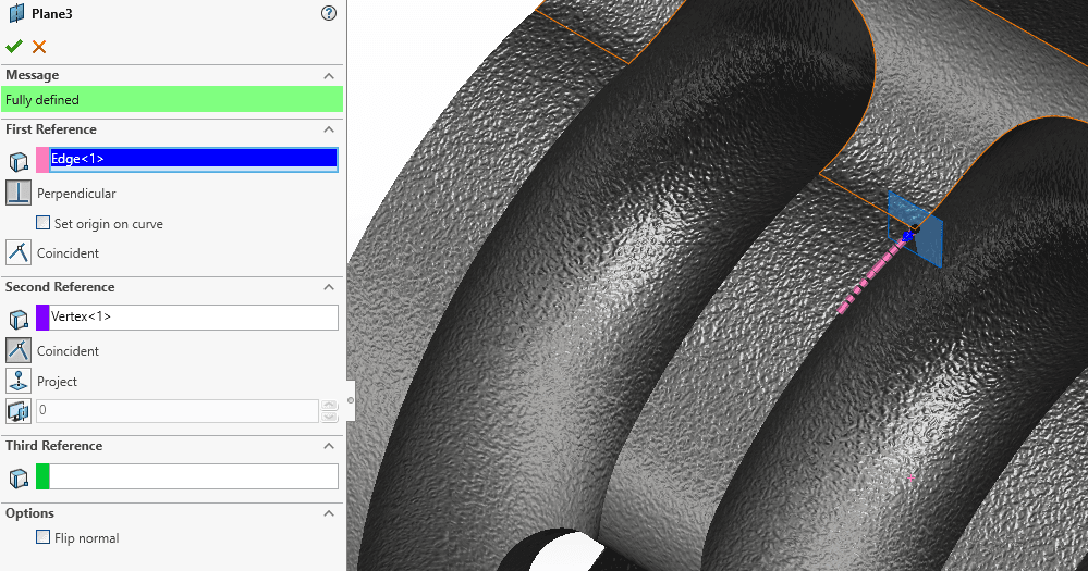 En avrundning i SOLIDWORKS fortsätter i allmänhet så långt som kanten är tangent. Ofta är detta vad vi önskar. Ibland kan det vara ett problem att få avrundningen att stanna. En metod kan då vara att
