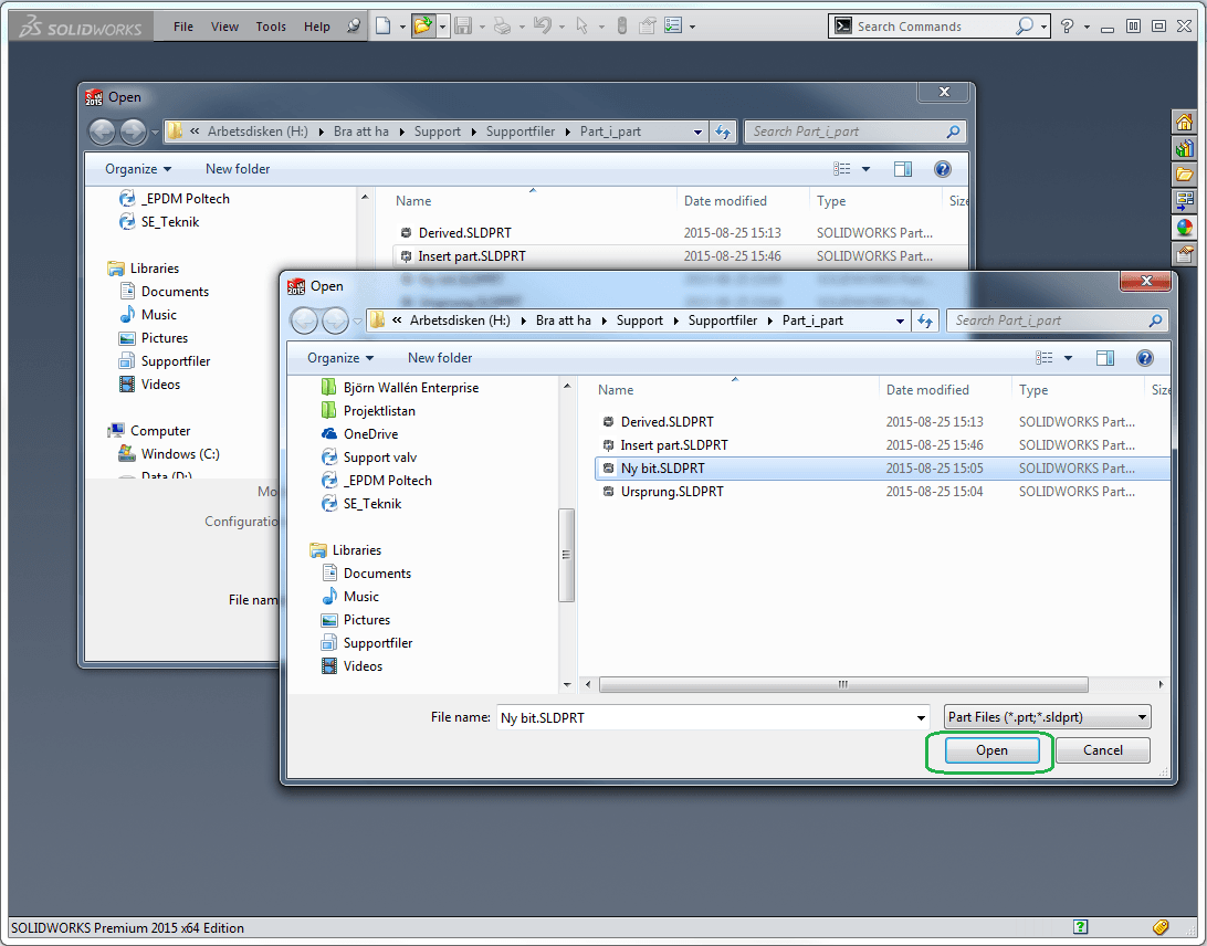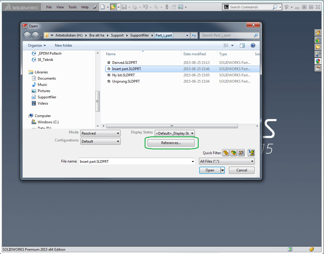 - Välj file – open och markera den part du vill öppna. Tryck sedan på knappen references
