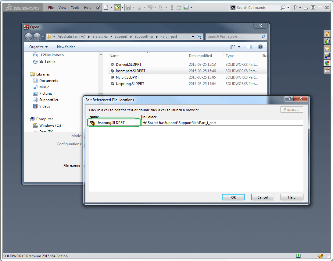 - I rutan som kommer upp ser du den part som är refererad. Dubbelklicka på filnamnet.