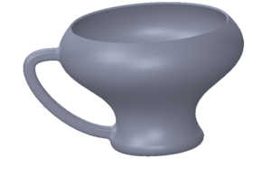 Den sista biten där den också då kan komma till användning är när man snabbcadar något och får något överskottsmaterial någonstans. Nedan ser ni en konceptmodell på en ny tekopp. Kollar man lite närmre så ser vi att det blivit överskott på insidan då vi gjorde handtaget sist. Här kan man ju göra flera saker, men det snabbaste är ju ofta att bara ta bort dessa ytor.