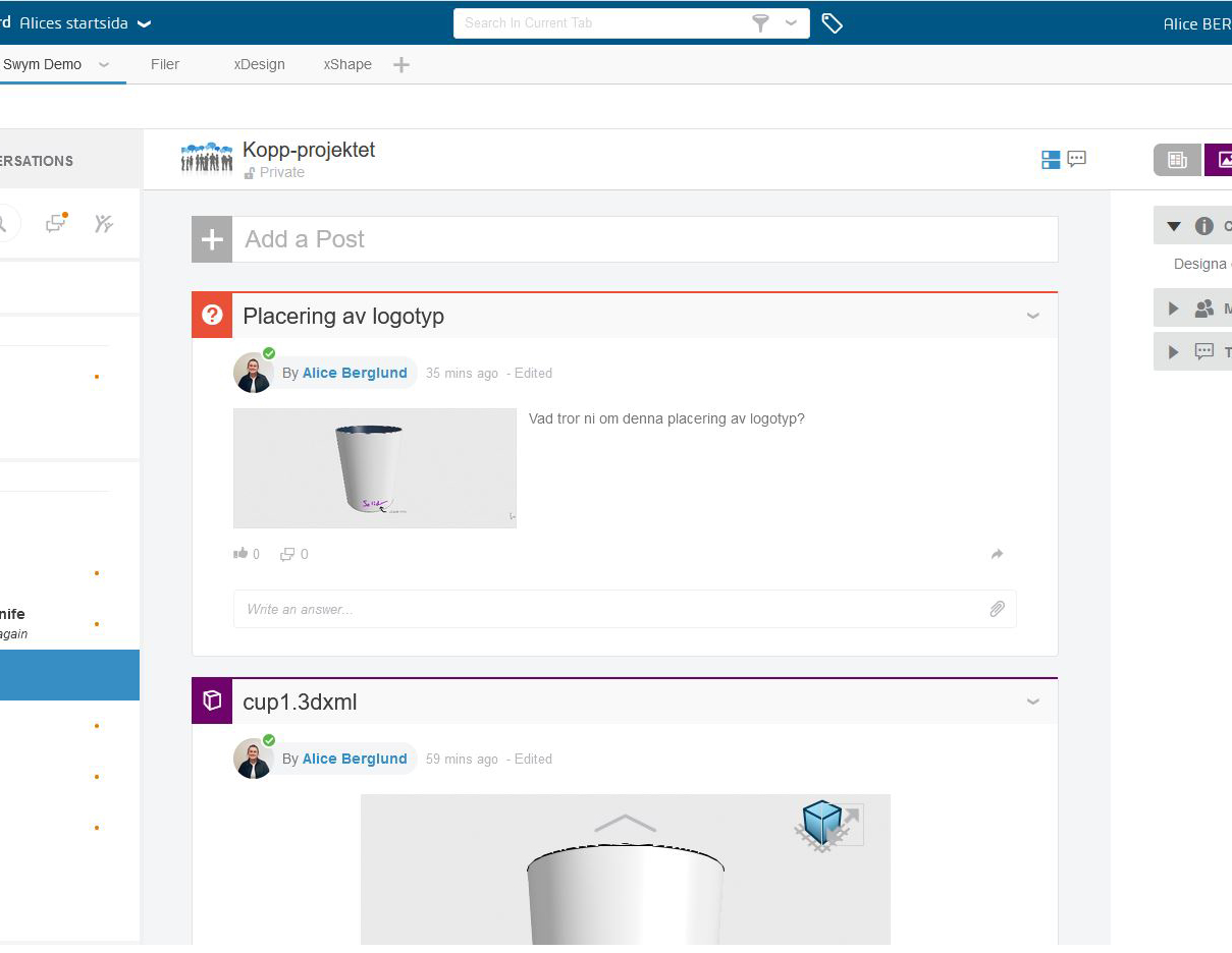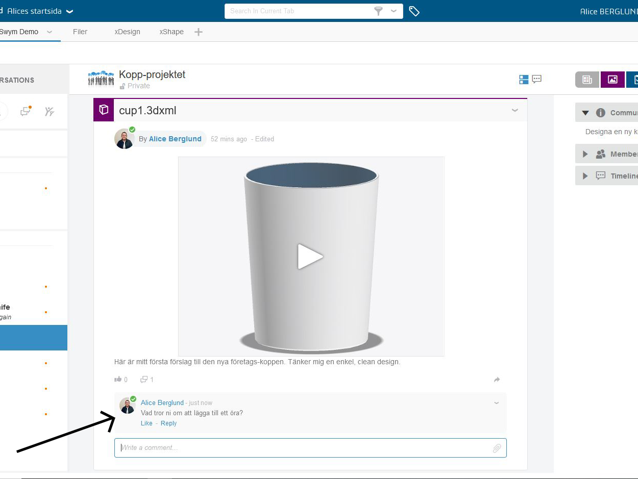 Såhär kan alltså du och dina kollegor/vänner arbeta med designutveckling i 3DExperience Platform. Funktionerna som jag gått igenom gör det enkelt att bolla nya idéer mellan varandra på en samlad plats, tills alla är nöjda och överens med hur koppen ska se ut.