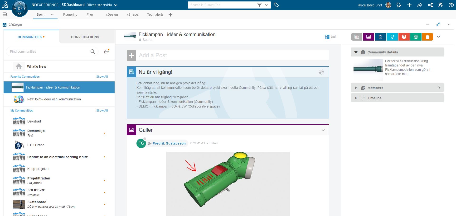 Idag tänkte jag berätta lite om applikationen som beskrivs som en av grundstenarna i 3DEXPERIENCE Platform, nämligen 3DSwym. Här skapar du Communities, en plats som är till för att kommunicera med varandra genom att lägga upp olika inlägg och bilder. Applikationen ingår i rollen Collaborative Business Innovator.