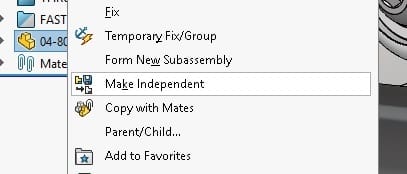 Högerklicka på den delen som ska bli en egen part och hitta ”make independent”.