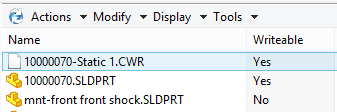 Vad kan man då göra i offline-läget och vad ska man förbereda för att det ska funka bra? Jo, om filen finns i den lokala valv-vyn (dvs i den blå bollen på din dator) så kan man öppna den och göra enkla saker som kopiera, skriva ut, återanvända etc. Däremot, om man också vill ändra, då behöver filen ha checkats ut av dig innan du blev off-line. Om filen är ändringsbar, dvs utcheckad syns i kolumnen ”Writeable”