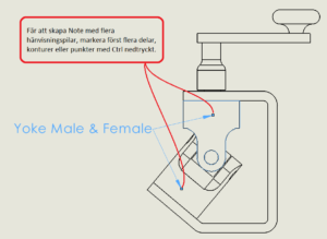 För att skapa flera hänvisande pilar från en anteckning (Note), håll ner Ctrl och markera flera saker i en ritnings-vy.