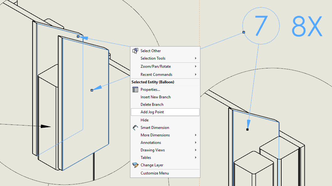 Pilar på ritningar, kan inte bli för många? Fick från en av er ett tips om att man kan dela en pil mitt på. Det heter BRANCH fick jag lära mig. Högerklicka på en pil och välj Branch i menyn