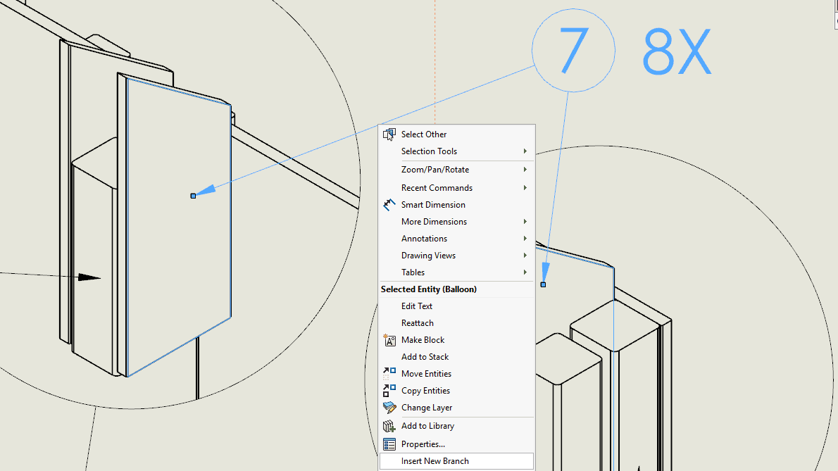 Pilar på ritningar, kan inte bli för många? Fick från en av er ett tips om att man kan dela en pil mitt på. Det heter BRANCH fick jag lära mig. Högerklicka på en pil och välj Branch i menyn