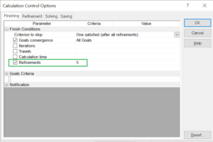 Inställningarna hittar vi i menyn Calculation Control Options och fliken Refinement