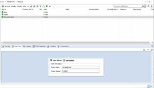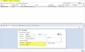 På bilden ovanför kan ni se tre mappar som jag har skapat i vårt PDM-valv. Jag har skapat ett datakort för mappar där vi har två variabler, den ena heter ”Project Name” och den andra heter ”Project Number”.
