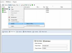 Uppdatera informationen på filerna i mappen genom att markera mappen och klicka på Modify > Update > Values in Files… och följ stegen. Observera att beroende på vilken status filerna har, kan du behöva mer rättigheter – du måste nämligen checka ut alla filer för att kunna uppdatera datakorten.