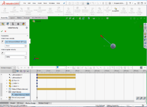 För att skjuta bollen är SOLIDWORKS Motion det självklara valet. Detta är ett addin som ingår i SOLIDWORKS Premium och som startas från addins-fliken. Själva simuleringen görs sen i Motion Study-fliken.