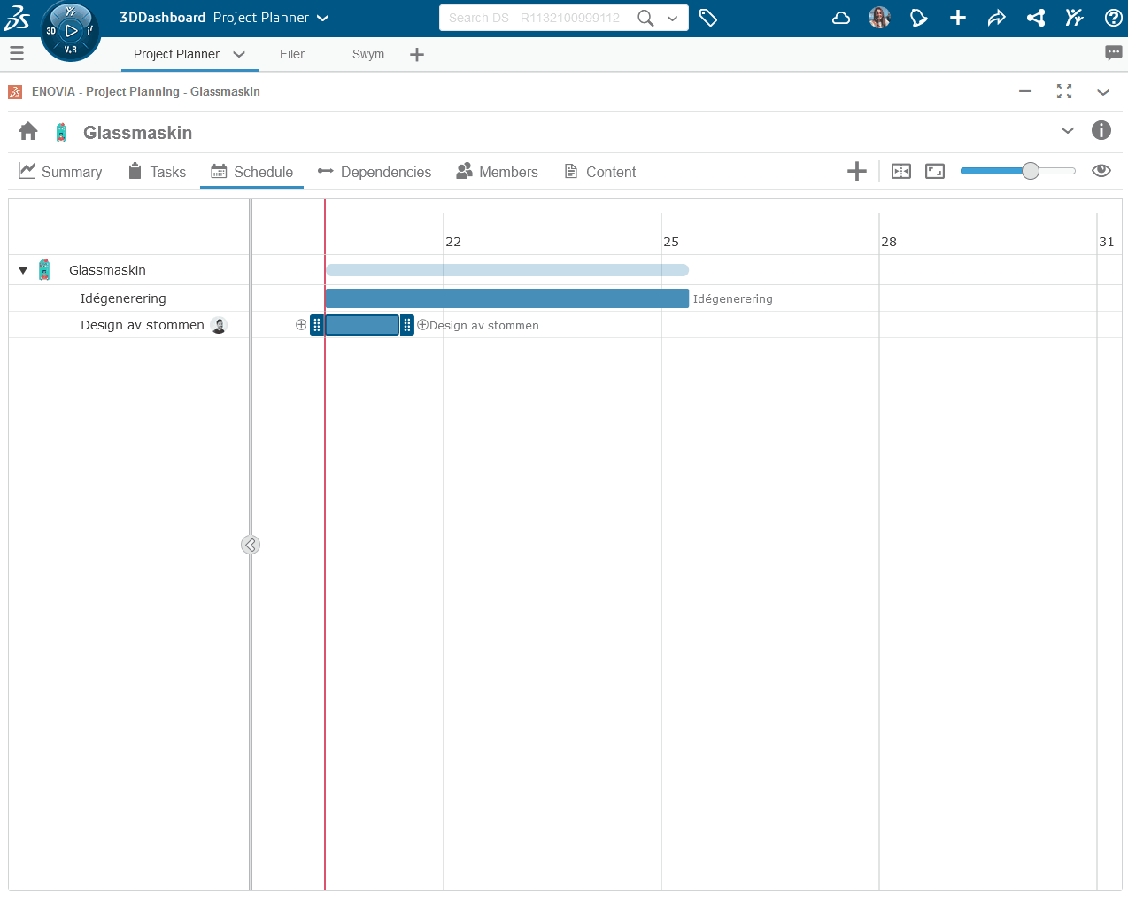 Vad gör man då med detta verktyg? Project Planning förbättrar möjligheterna till att hantera och samla information kring projekt direkt i din 3DEXPERIENCE plattform. Till exempel så kan du skapa och tilldela uppgifter till andra användare. Använd sedan appen för att få en överblick av projektet ifråga. Att allt är kopplat till plattformen gör det enkelt för alla deltagare att få tillgång till informationen, då allt du behöver är en internetuppkoppling.