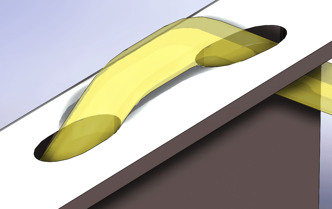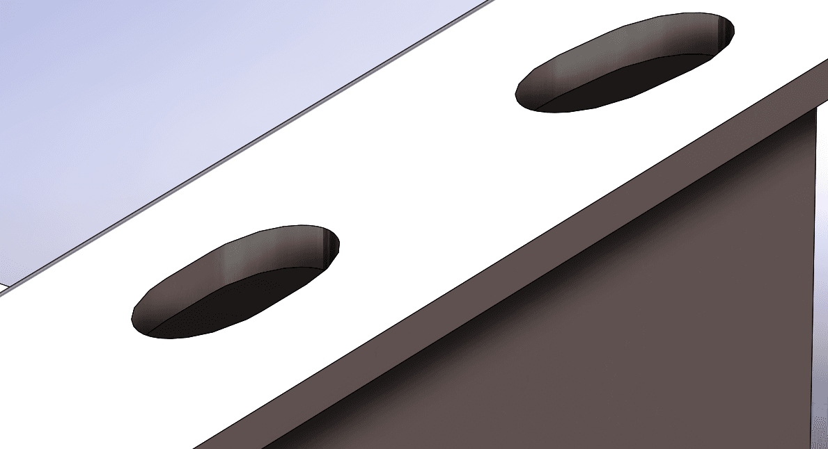 För att ett hål ska kunna skäras i en utbredd plåt krävs att hålet går vinkelrät mot plåten. Om hålet i den bockade detaljen ska vara lite på snedden så behöver detta på ett eller annat sätt hanteras.