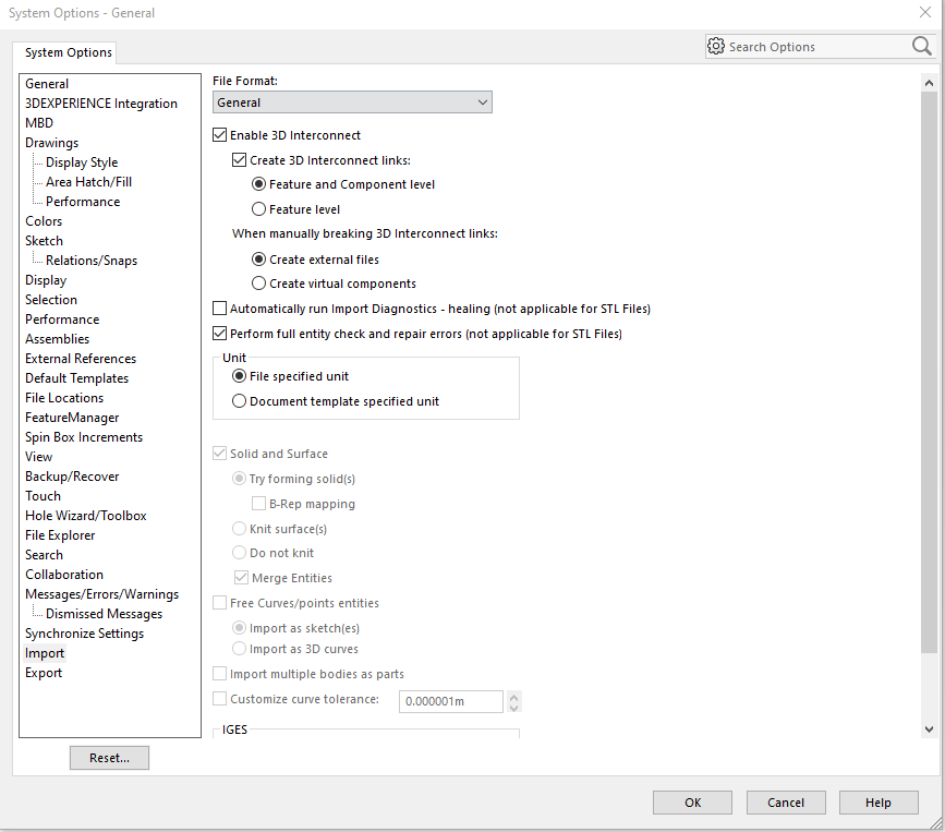 Finns det någon baksida? Jo, det finns fortfarande tillfällen där den gamla importmotorn är ett bättre alternativ. Några få av våra kunder, som använder importfunktioner väldigt ofta, har sett detta, och då kunde vi bocka ur alternativet enable 3d interconnect för att testa om det blev bättre utan. Så om ni vet med er att ni importera STEP-filer (eller andra CAD-filer från andra system) väldigt ofta, så kan det vara läge att avvakta en aning med 2024 SP2, eller att installera en 2023 installation vid sidan av för att ta dig an de importerna som inte fungerar i 2024 SP2.