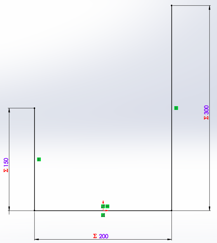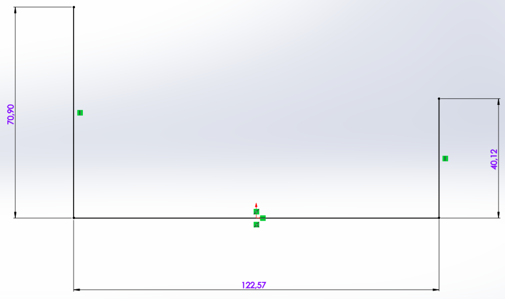 Bra, nu har vi tre stycken globala variabler som finns sparade i parten eller sammanställningen. Om vi nu tänker oss att vi har en part och vill göra våran första skiss så kan vi måttsätta denna skiss med hjälp av dessa tre variabler. I bilden nedan är tre linjer ritade och måttsättningen gjord på klassiskt vis.