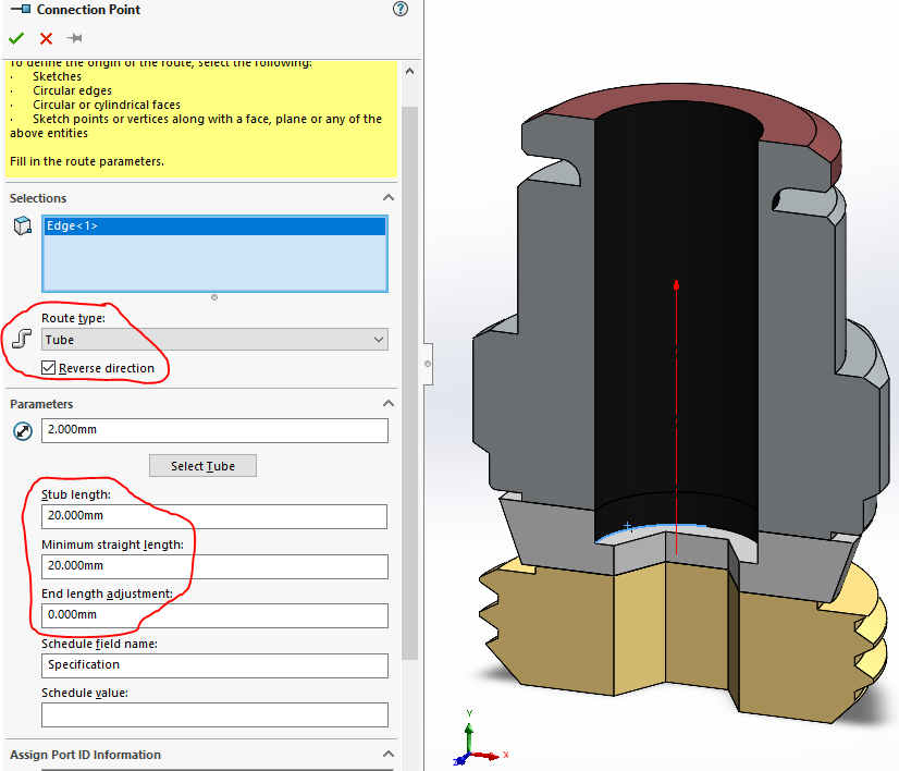 När Routing väl är startat så har vi fått fler funktioner och menyer i SW. Tittar du in under menyn Tools-Routing-Routing Tools så hittar du något som heter ”Create Connection Point”. OBS detta gäller för SW2022 och ser lite annorlunda ut för tidigare versioner.