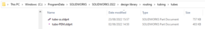 Eftersom jag vet att denna fil (med amerikansk enhet) har den geometri och information som är nödvändig för att den skall fungera i Routing så ”knycker” jag hela filen genom att kopiera den, lägger den exempelvis en nivå upp i sökvägen, döper om den och klipper ut – klistrar in den jämte tube-ss.sldprt. Jag döpte min till tube-PEM.sldprt