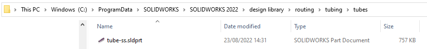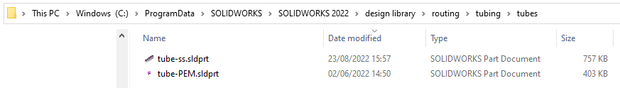 C:\ProgramData\SolidWorks\SOLIDWORKS <VERSION>\design library\routing\tubing\tubes