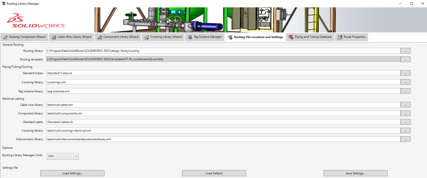 Sökvägen under General Routing – Routing Library är väldigt viktig att notera. Vid en omodifierad standardinstallation av SOLIDWORKS så är denna sökväg alltid: