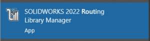 Om du inte tidigare öppnat och använt hjälpprogrammet Routing Library Manager så blir det nu ditt första steg. Routing Library Manager (förkortat RLM) är ett stand-alone program som öppnas parallellt med SOLIDWORKS. Det finns till min kännedom tre olika sätt att starta detta program men enklast är säkerligen att du på Windows-menyn skriver ”Routing” varvid Windows ger förslag på att det är detta program du antagligen söker efter. När du väl öppnat programmet gå till fliken Routing File Locations and Settings. Se nedanstående bilder.