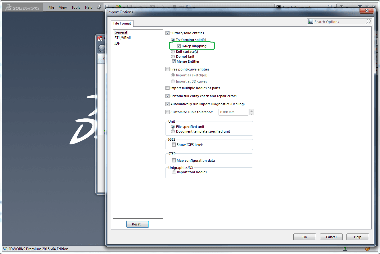 I fönstret som dyker upp bockar du i B-rep mapping och trycker sedan ok.