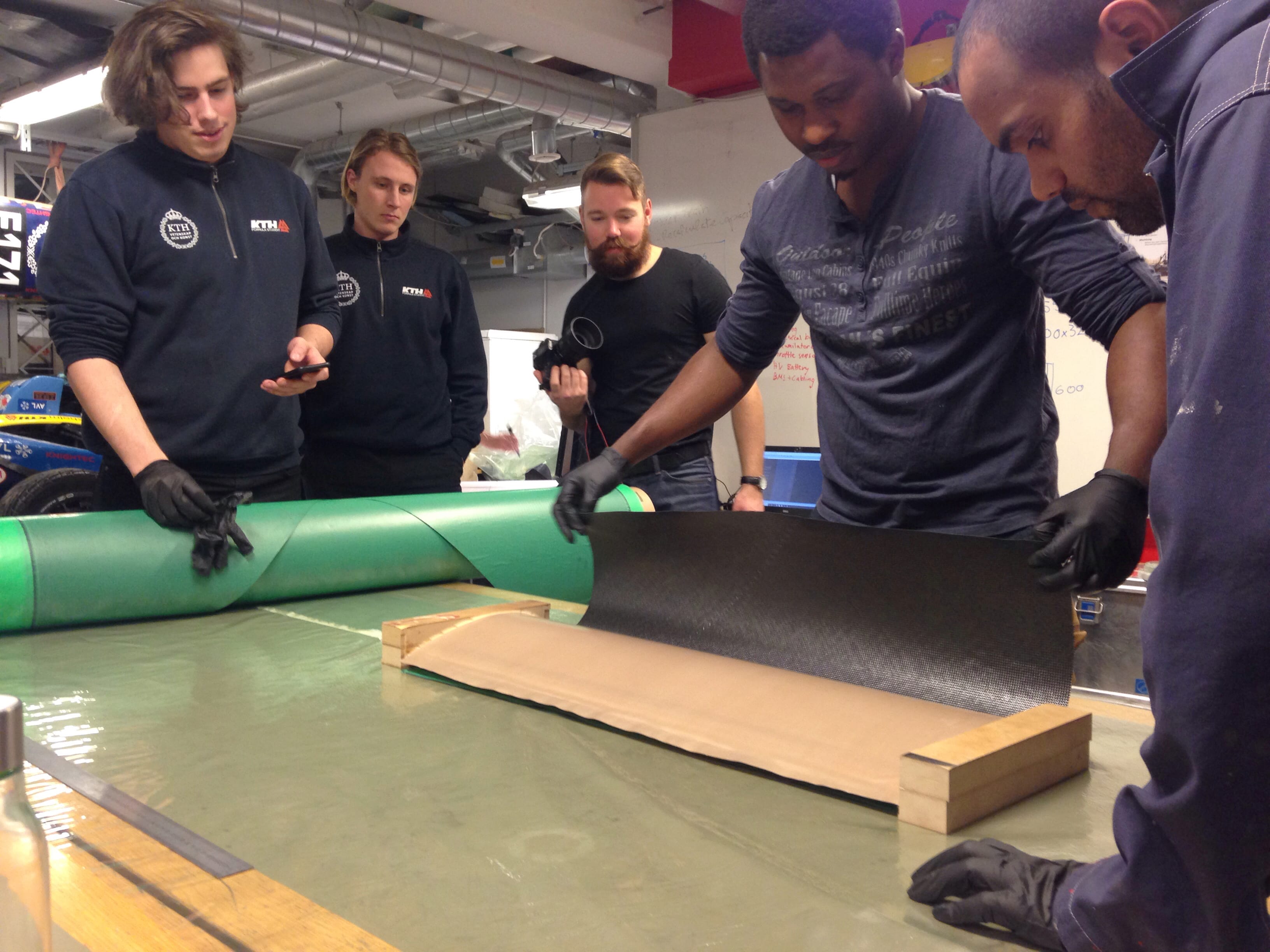 Tillverkningen av racingbilen i glasfiber pågår och det som nu ska tillverkas är chassit. -”Vi fokuserar nu på ’test-critical-components’ så att vi kan få en bil som rullar och som vi kan testa våra nya system på. De saker som inte är absolut nödvändiga för att bilen ska rulla har låg prioritering just nu”, berättar Gustaf vidare.