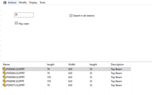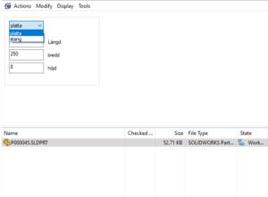 Ofta kan det finnas intresse av att kunna hitta filer utifrån storlek, så man inte behöver göra samma sak på nytt igen, vad gällande vinklar, plattor, stänger m.m. Jobbar man med skärning så kan det vara intressant att sortera efter tjocklek för att kunna fylla ut plåten man jobbar med. Använder man PDM då så kan man fånga måtten i SW mot produktkortet och göra anpassade sökningar för att åstadkomma precis det man är ute efter.