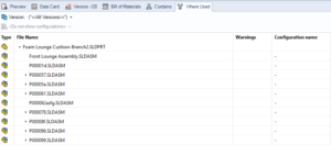 Och som alltid med PDM:en så finns ju möjligheten att se var parten är använd sen när man hittat och återanvänt den. Så man vet var denna plattan/stängen eller var det nu är återvänds ifall man någon gång skulle behöva förändra denna modellen.