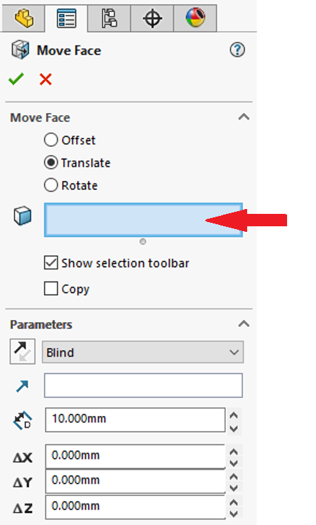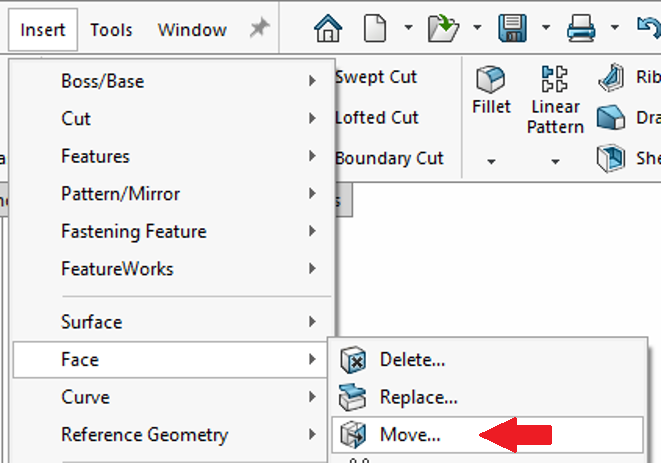 Klicka på Insert > Face > Move för att starta kommandot.