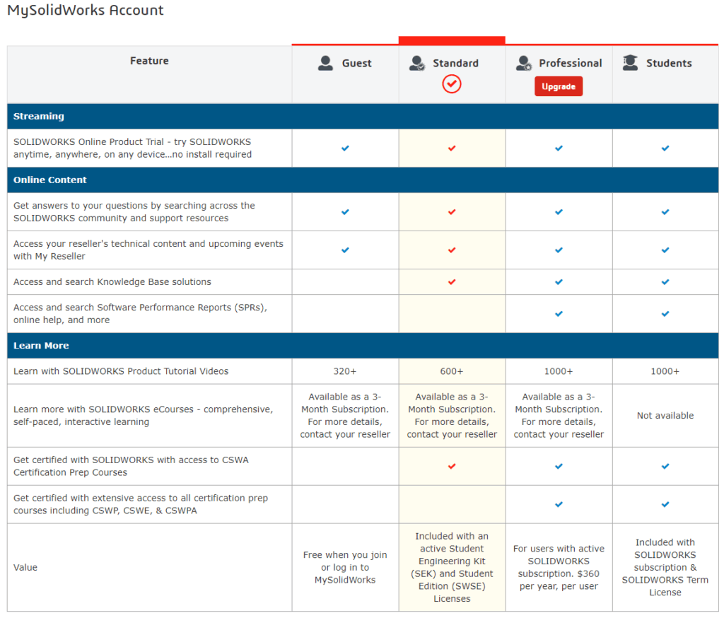 En mycket användbar resurs för oss SOLIDWORKS-användare är MySolidWorks-portalen . Här finns online-kurser, tutorials, användarforum, CAD-modeller och mycket mer. Det finns även möjlighet för den som är CAD-Admin att administrera företagets licenser via sitt inlogg.