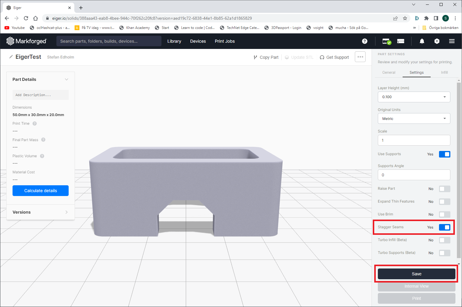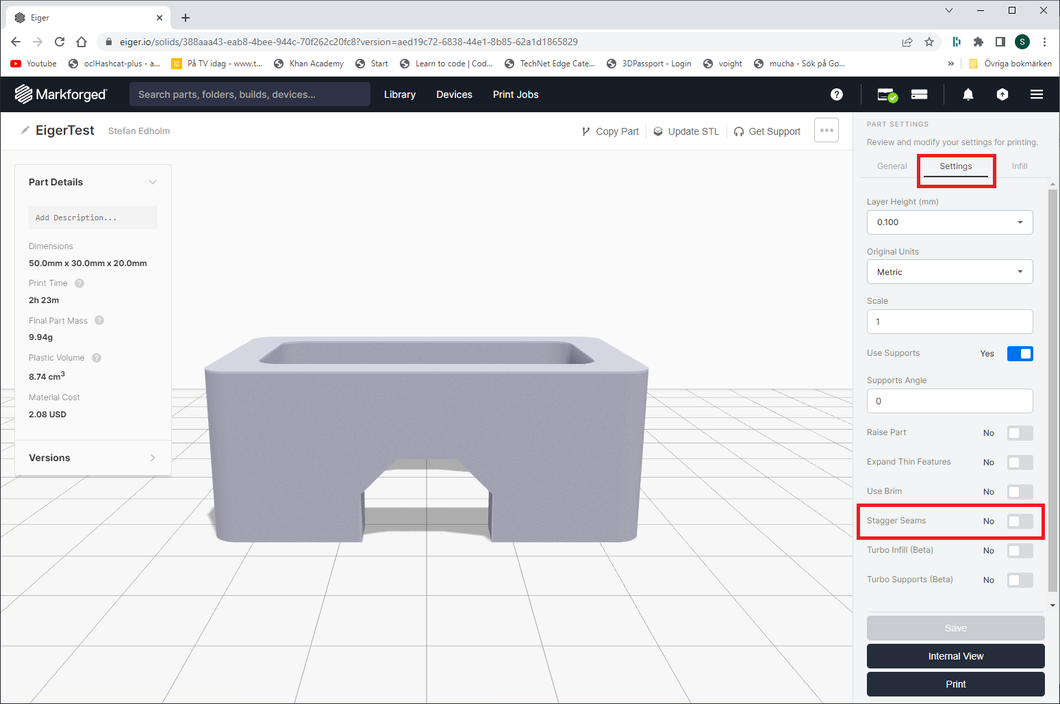 En av dessa är en inställning som heter Stagger Seams. Med den aktiverad så kommer skrivaren inte att starta på samma ställe på varje lager.
