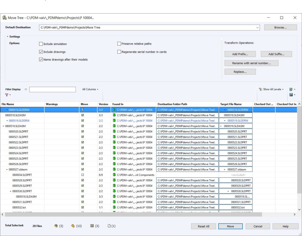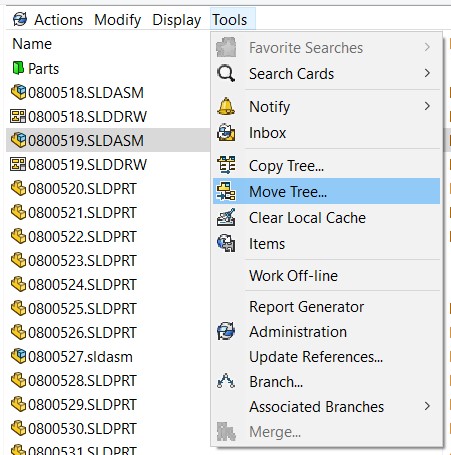 PDM Professional har ett verktyg för att flytta en filstruktur, som är väldigt likt verktyget Copy Tree.