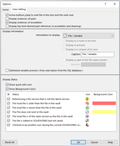 För er som lätt glömmer och skulle vilja hitta dem igen så finner ni dem i Solidworks under Tools > Solidworks PDM > Options.