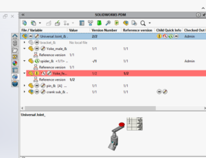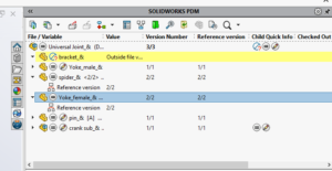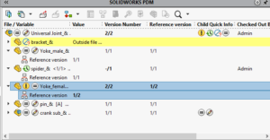 Sedan i kolumnen till höger har vi Reference version (För er som inte ser den kan ni dra fram den på samma sätt som i utforskaren) som visar att denna version av toppsammanställningen refererar till version 1 av Yoke female.