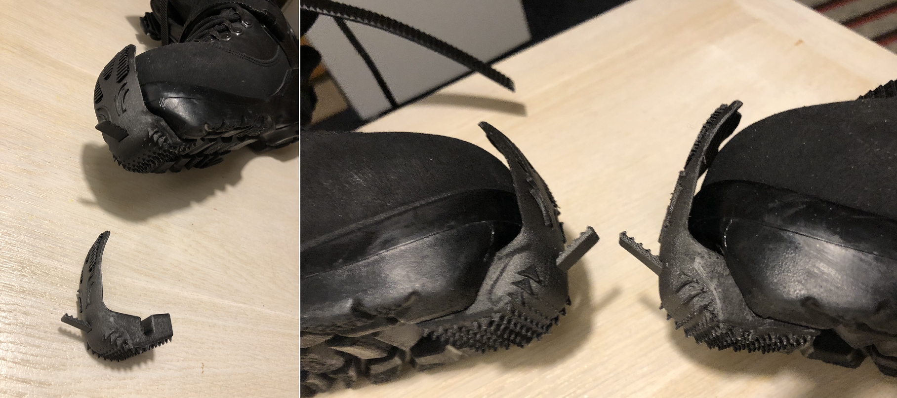 Efter ännu en design-iteration av skoskydden görs till slut en fin utskrift av ett par. Nu får den mycket nöjda Arwind pilottesta dem intensivt i vinter. Om utfallet är lyckat kanske det blir fler utskrifter i serieproduktion.