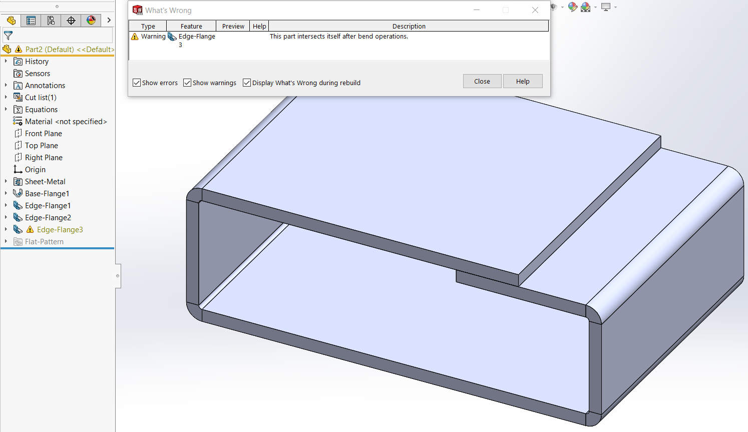 Varför får man ibland ett felmeddelande som säger ”This part intersects itself after bend operation” när man har gjort sin plåt?
