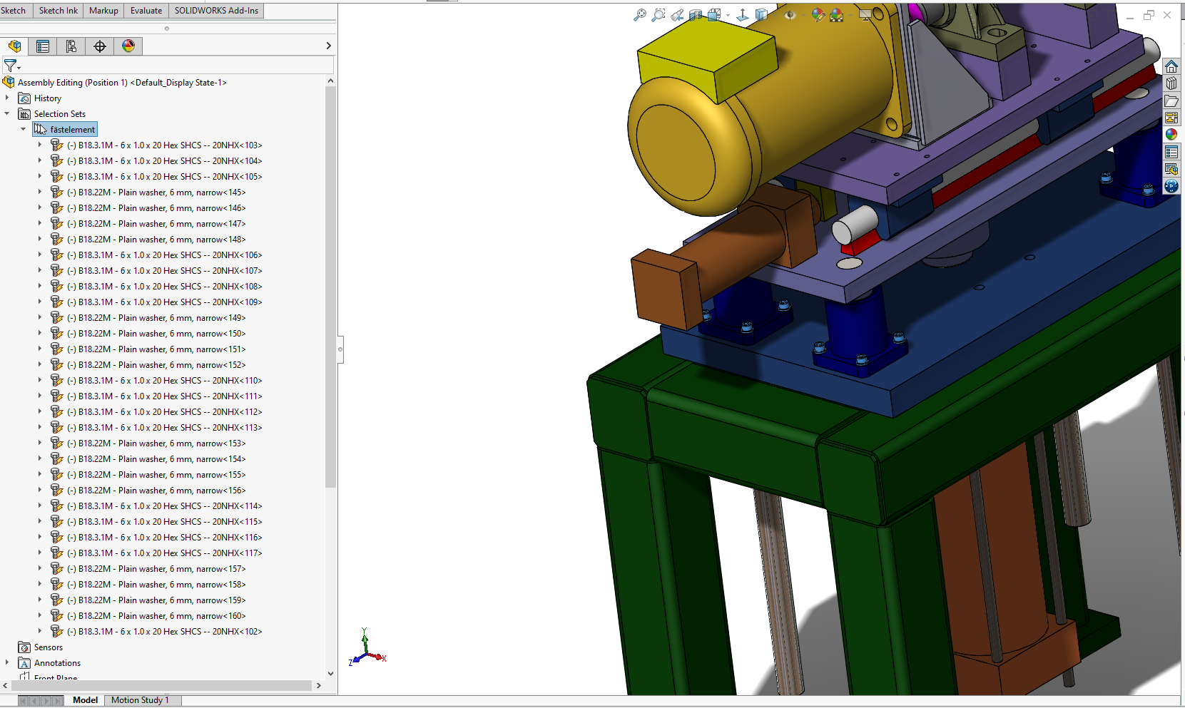 Selection Sets är något som har funnits i SOLIDWORKS sedan version SOLIDWORKS 2015, men det finns nog ändå många som inte utnyttjar eller ens vet att denna funktionalitet existerar. När man finner sig i en situation där man ständigt behöver välja samma ytor/kanter/komponenter kan detta spara otroligt mycket tid och frustration. Ett Selection Set tillåter er att gruppera ihop ett antal selekterbara objekt i en sammanställning eller part så att man kommer åt dessa via ett enda klick i designträdet.