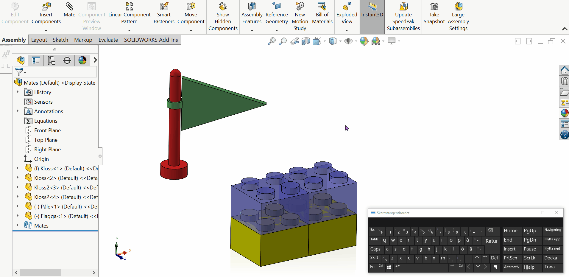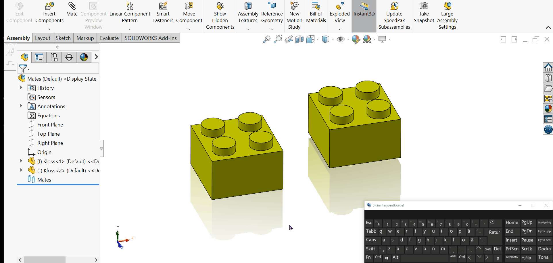 Copy with Mates möjliggör att kopiera ett antal komponenter och få hjälp med att peka om deras mates mot omvärlden. De mates de har internt, mellan sig, bibehålls.