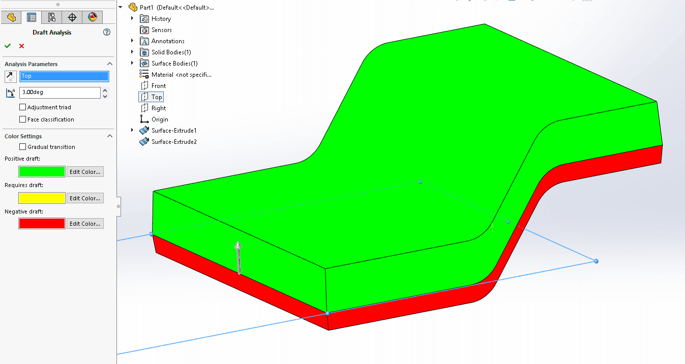 Geomtrier som ska produceras i formar behöver oftast utformas på ett sådant sätt att de går att få ut dem ur formen. Vi behöver i allmänhet bygga geometrin så att alla ytor har någon eller några graders vinkel i förhållande till riktningen som detaljen ska lämna formen, släppningsvinkel eller på engelska draft.