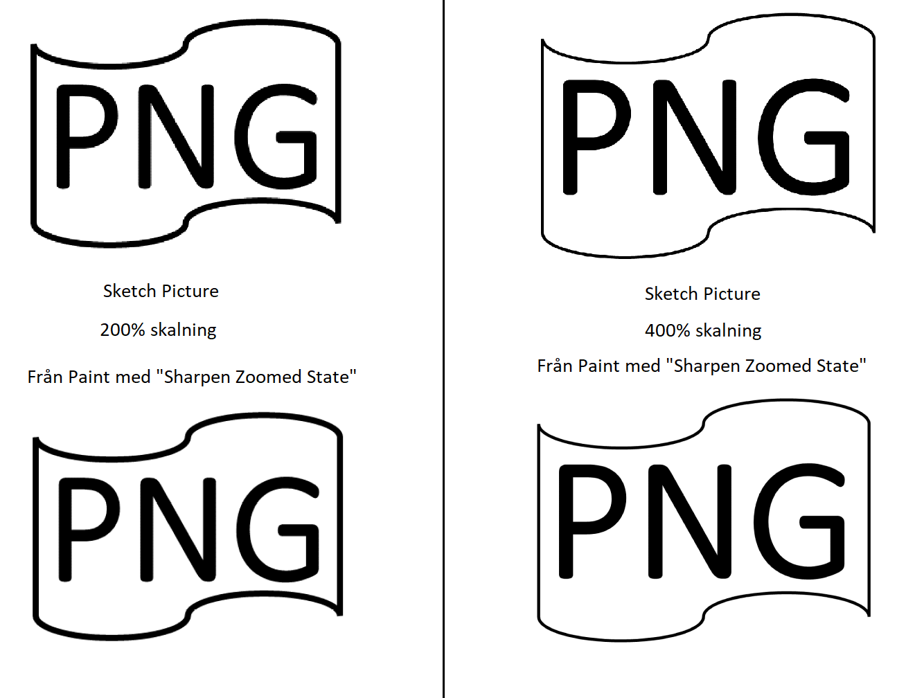 Nackdel: Mindre bra på skalning av bilder, behöver ställa in ”Sharpen Zoomed State” manuellt i bildens Properties för att ta bort svart ram runt bilden och för att skala om bilden fint. Microsoft Paint behöver vara installerat. Klarar inte GIF-bilder. Bilden slutar visas om ritningen sparats på en dator utan Microsoft Paint.