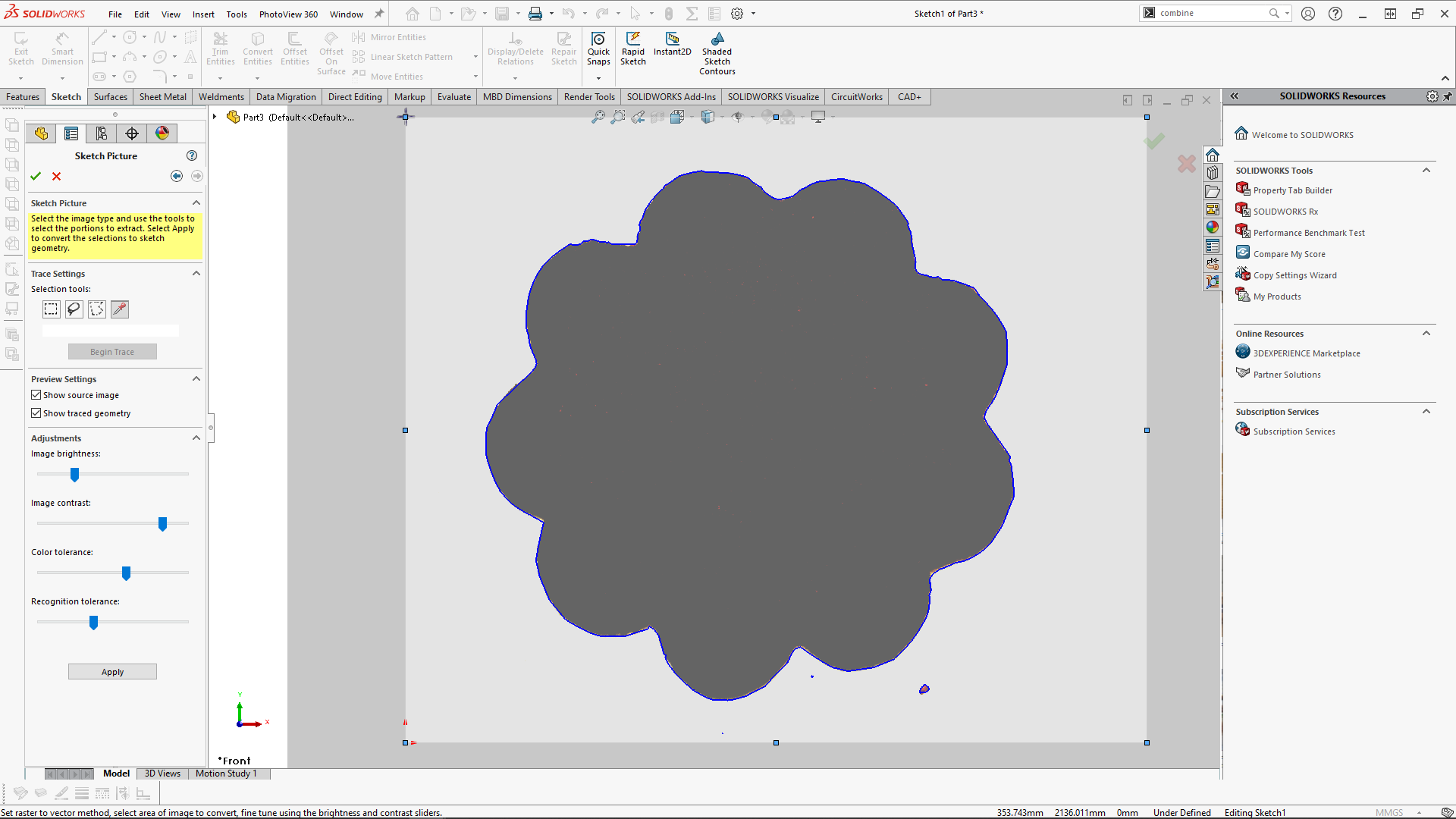 Sketch Picture är annars bäst lämpad för att i en Sketch vektorisera loggor till sketch block manuellt eller via ”Autotrace”. Det är också en bra metod för reverse engineering om inte 3D-skanning används.
