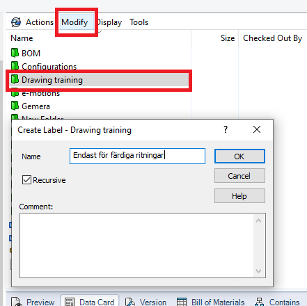 För er som undrar hur man gör en label, så gör man det i valvet, markera den fil eller mapp du vill ge en label, klicka på modify och gå ner till Label.