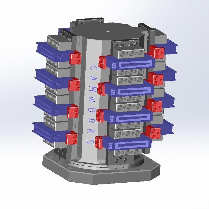 unna använda en 4 eller 5 axlig fräsmaskin för att bearbetning av antingen flera detaljer samtidigt (med en ”Tombstone” variant som på bilden) eller att bearbeta 5 av sidorna (plus alla icke plana som kan finnas) på en detalj i en 5 axlig maskin utan att behöva spänna om detaljen.