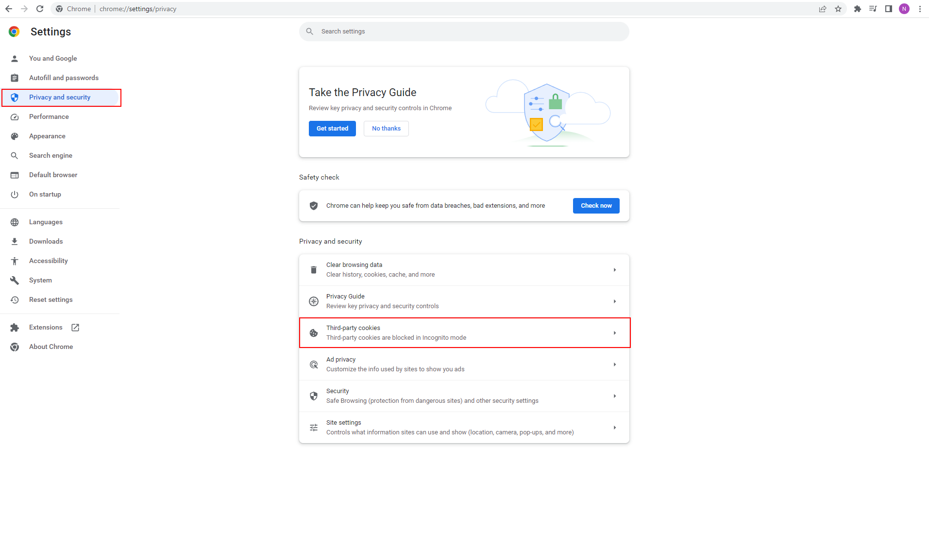 - Gå längst ner på sidan och tryck på knappen Add till höger om Allowed to use third-party cookies.