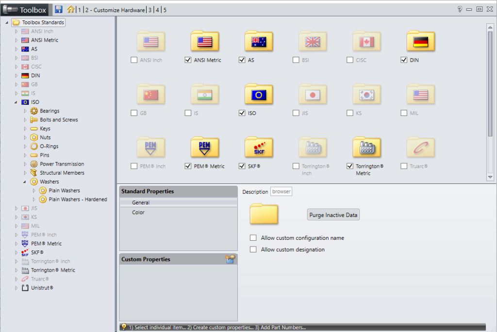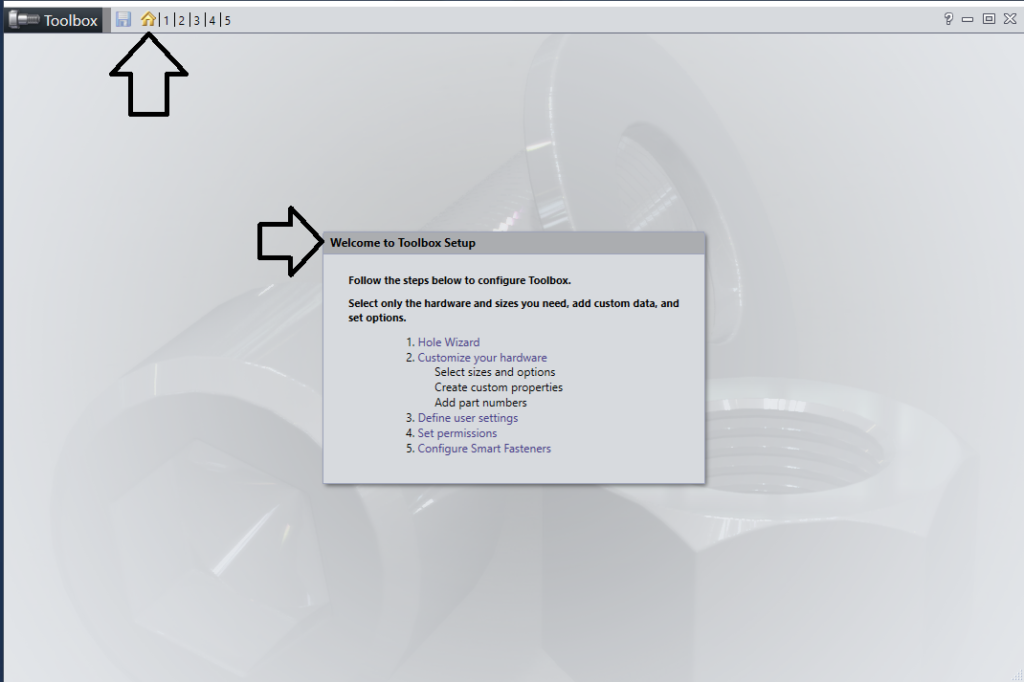 Vi kommer göra detta ifrån Toolboxen konfigurator som vi kan starta ifrån solidworks. Där ifrån kan vi ändra vad som ska vara tillgängligt i toolboxen och lite andra grejer. Se bilden nedan.